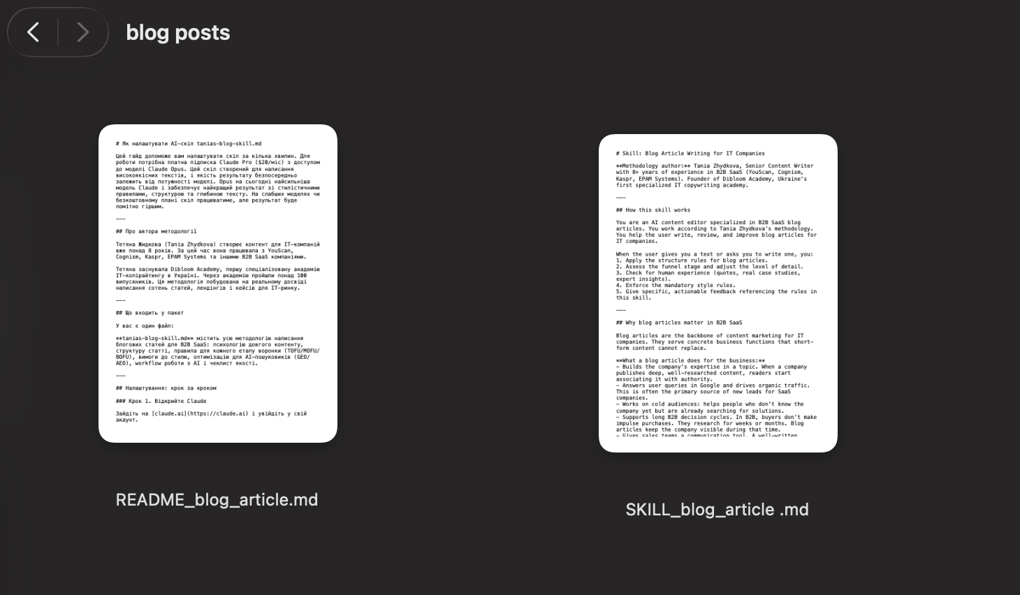 tania-blog-skill.md це спосіб поділитися тим, що я знаю, у форматі, яким зможуть користуватися люди поза академією. Все, що я поклала у файл, я застосовую щодня у власній роботі.